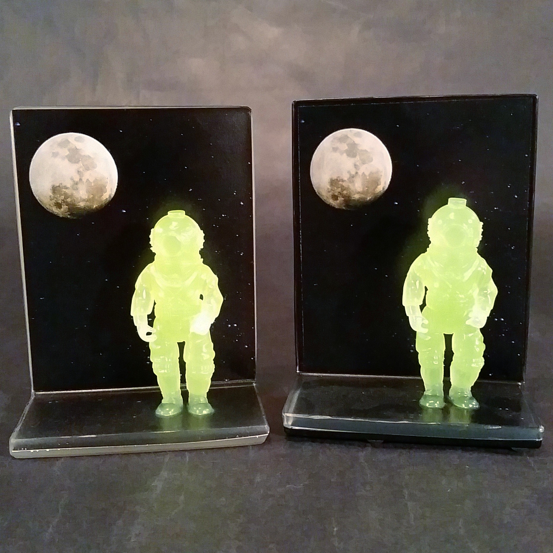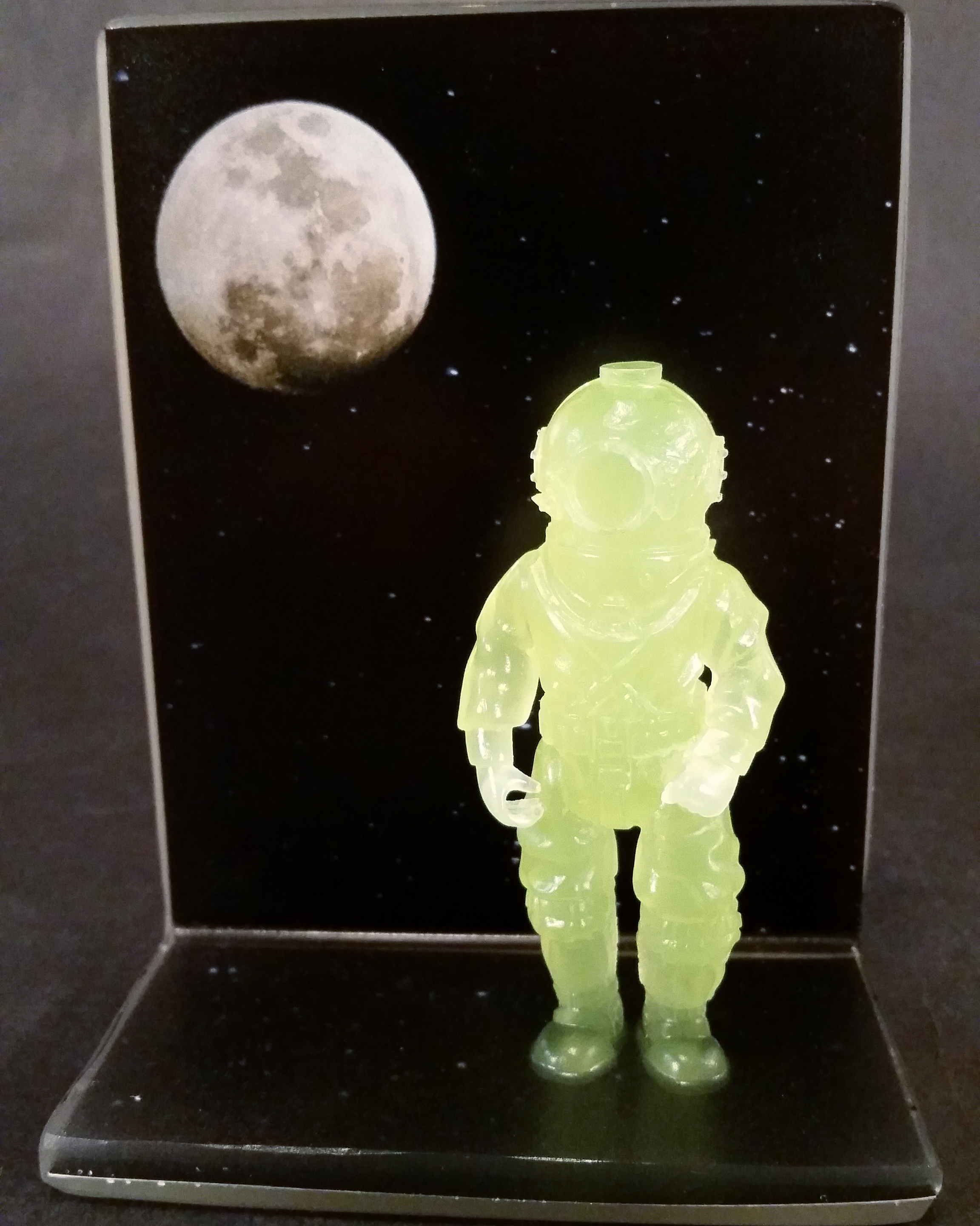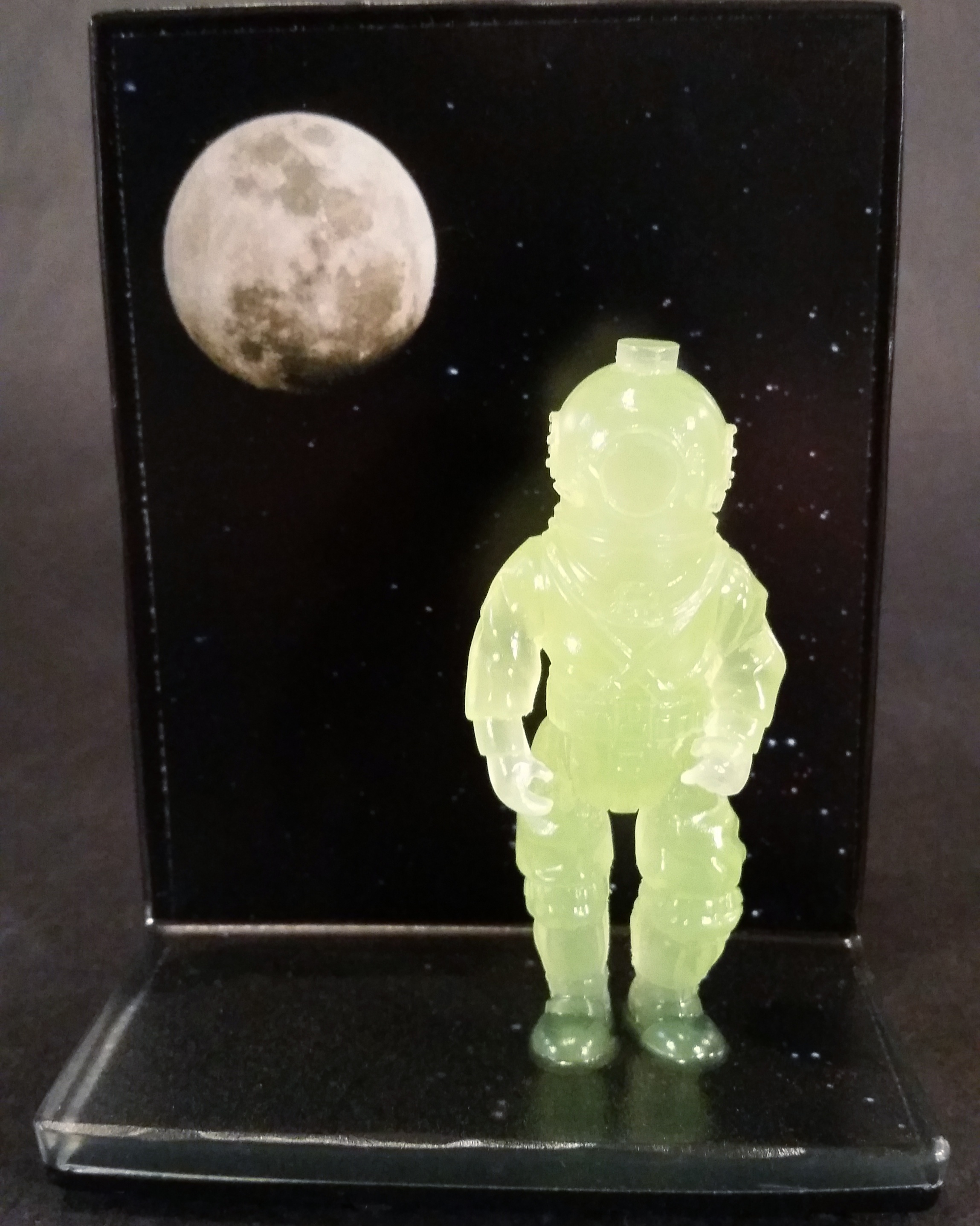 Hand Cast Resin pieces measuring 6"x4.5"x2.5" with 3.75" scale Daytime-Visible GID Green figures